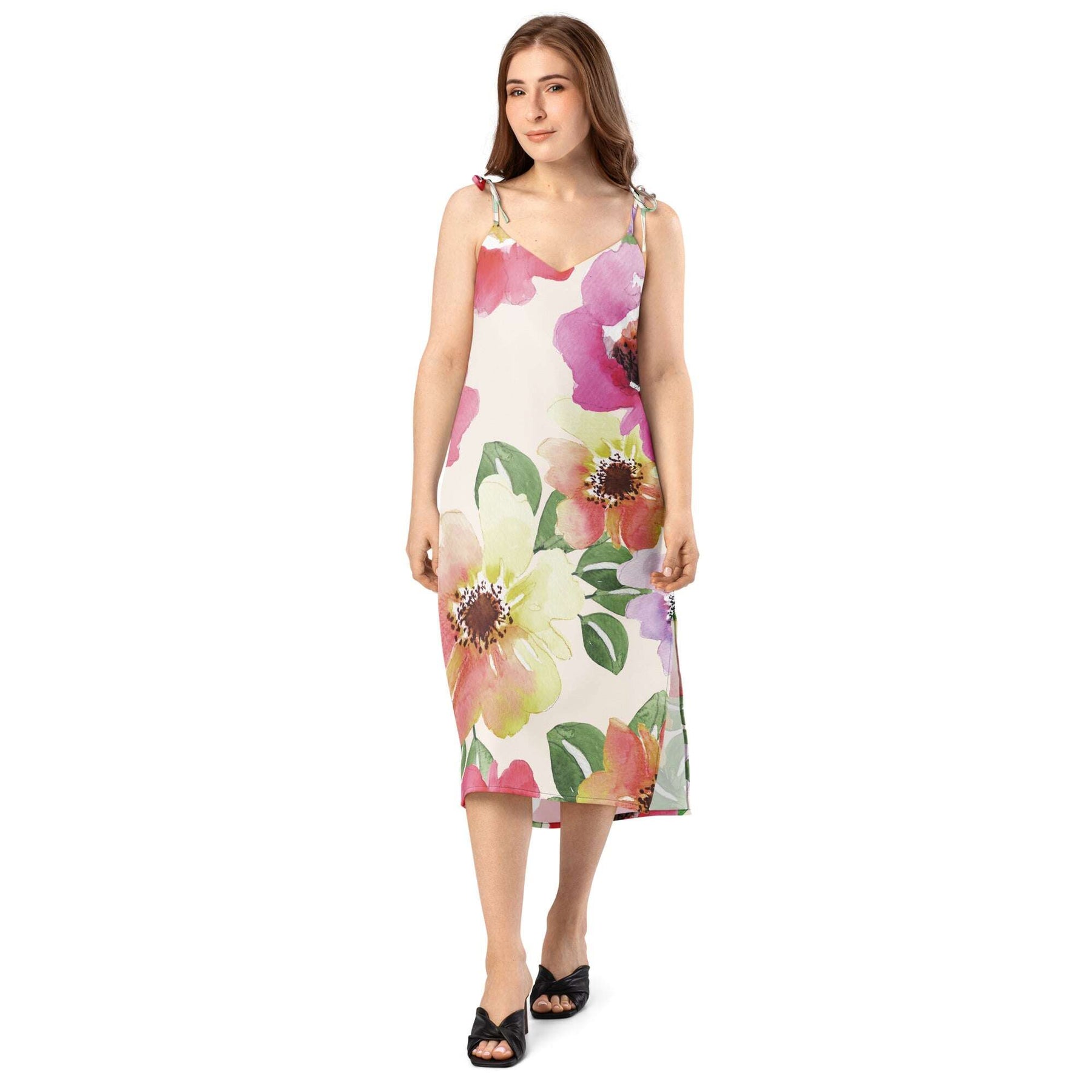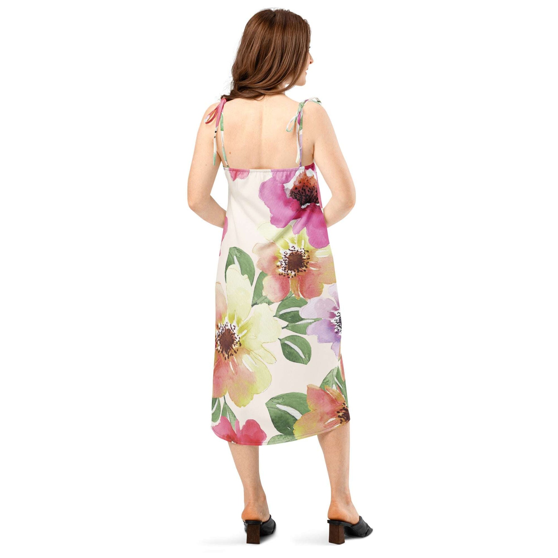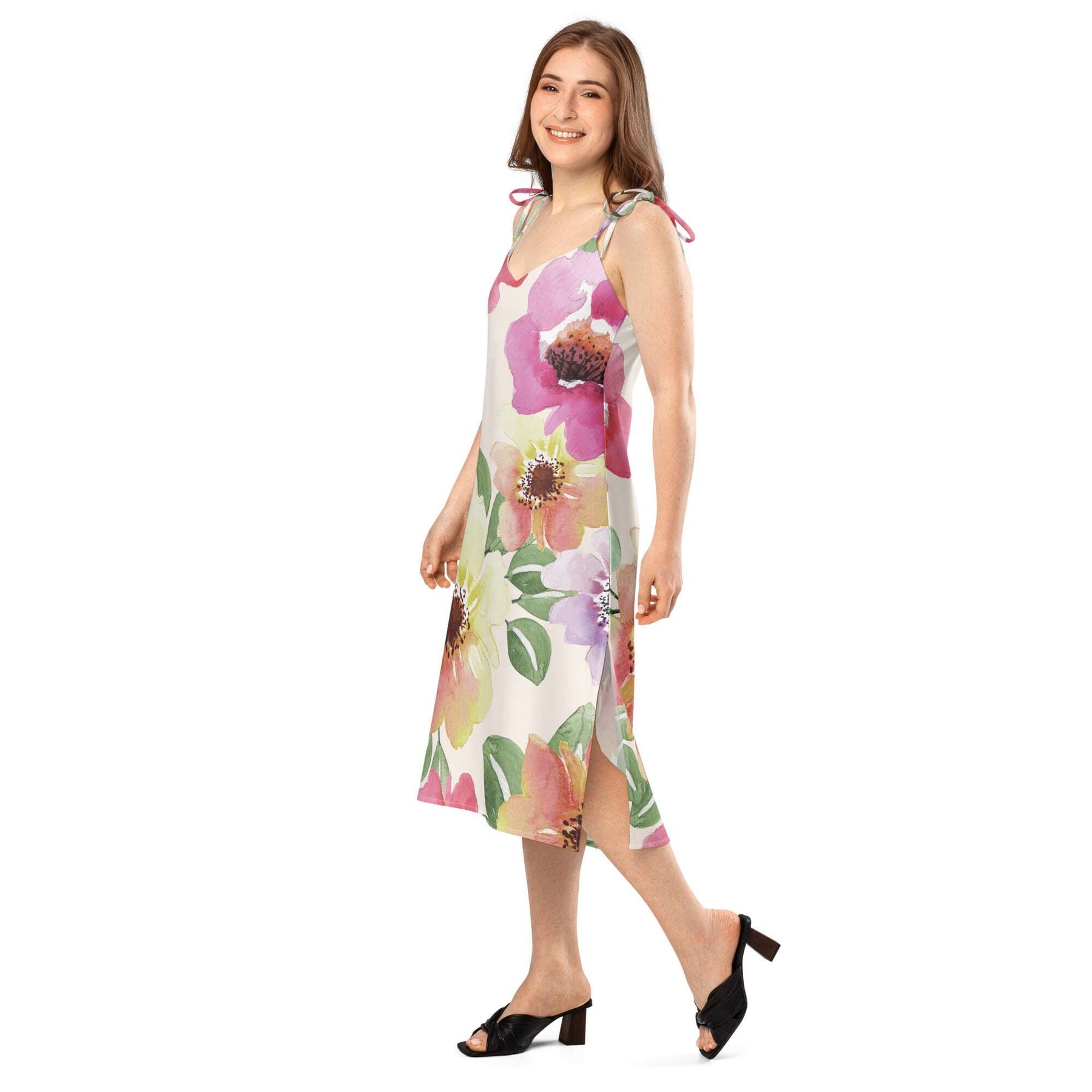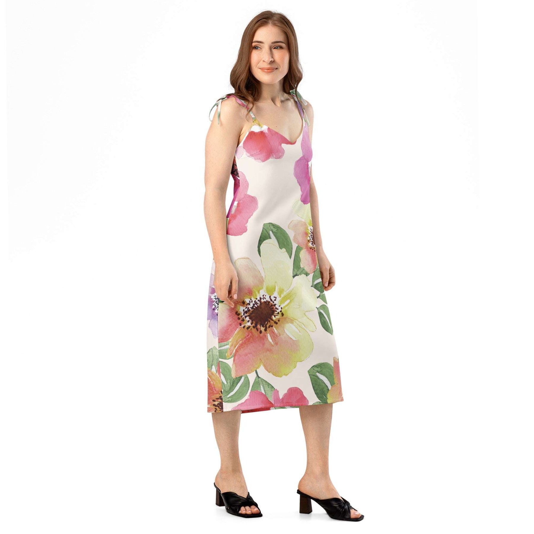 Tie-strap midi dress allover print flowers design size xs :2xl